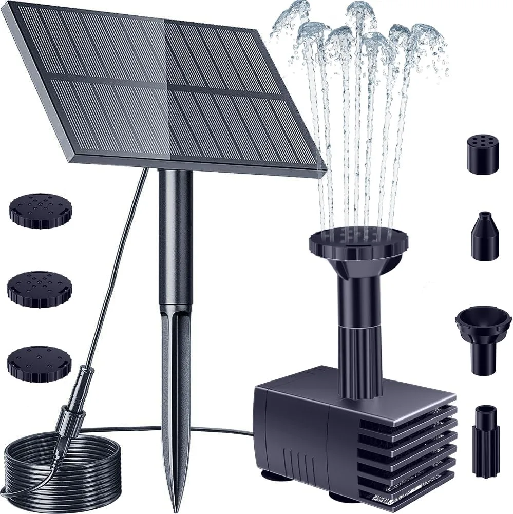 - Package Includes: Solar panel, pump, nozzles, extension rods, and stakes